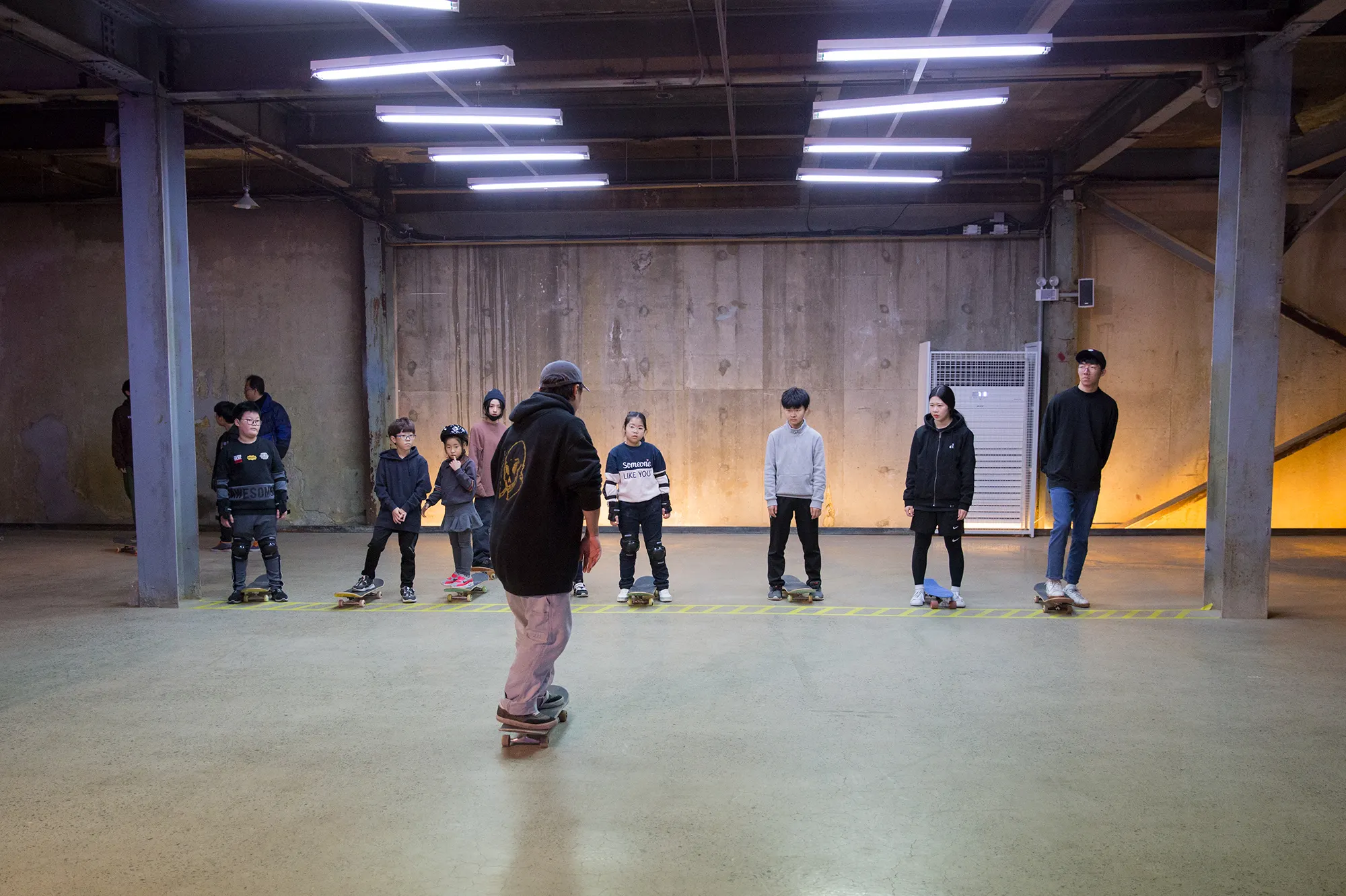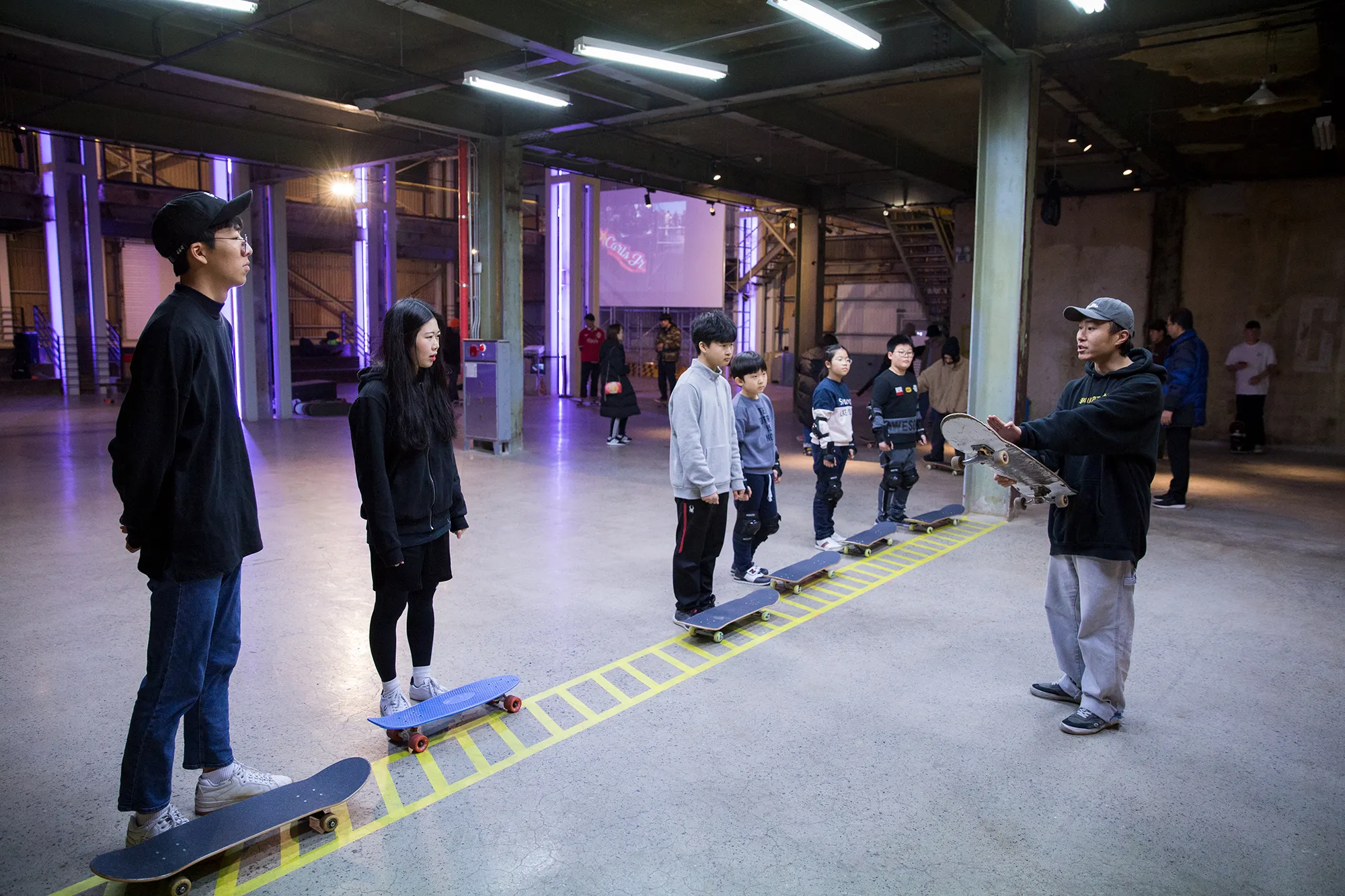 평소 스케이트보드에 관심이 많았거나 배울 기회가 없었던 일반인들을 대상으로 참가자 접수를 받아 체계적인 스케이트보드 레슨을 진행합니다.