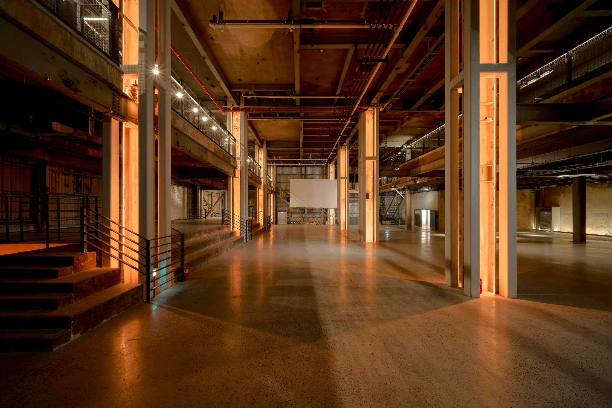 1층 약 990㎡, 1, 2층 도합 약 1650㎡에 달하는 천고 8m의 대공간으로 전시, 공연, 마켓, 행사, 촬영 등 다양한 용도로 이용가능합니다. 부속된 일렉트릭 룸은 행사의 백룸이나 독립된 별도 공간으로 사용될 수 있습니다. 2층 중층은 1층과 연계된 행사 장소로 이용하거나 조명, 카메라를 설치하는 보조공간으로 사용할 수 있으며, 1층과 분리된 단독 공간으로도 이용 가능합니다.