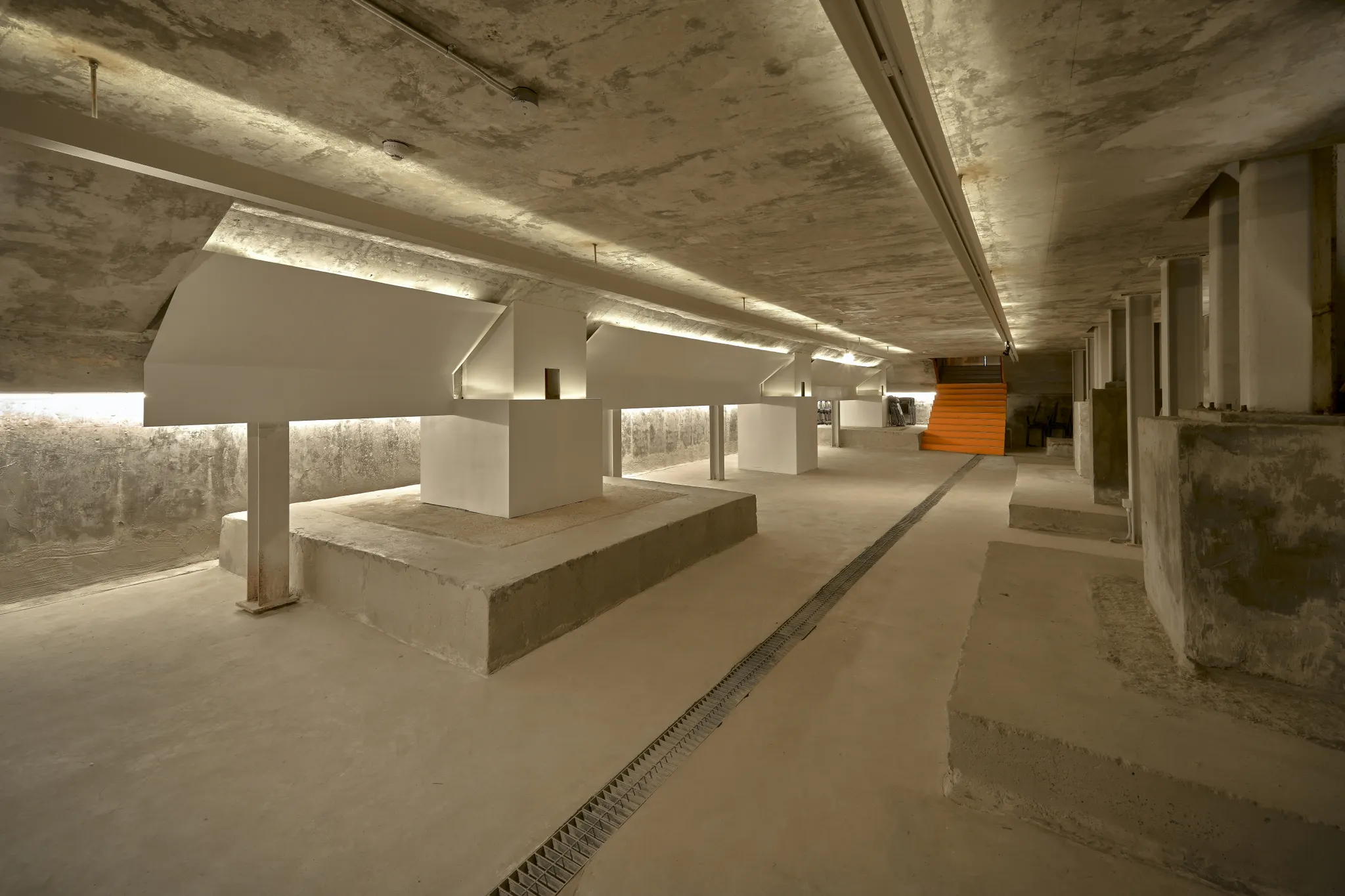 보강을 위한 굴토 작업을 통해 드러난 기존공장의 기초구조물은 유적과 같은 신비함을 지니고 있었다. 증축을 위한 구조물이 더해진 상황을 그대로 보여주며 벙커공간으로 남게 되었다.
