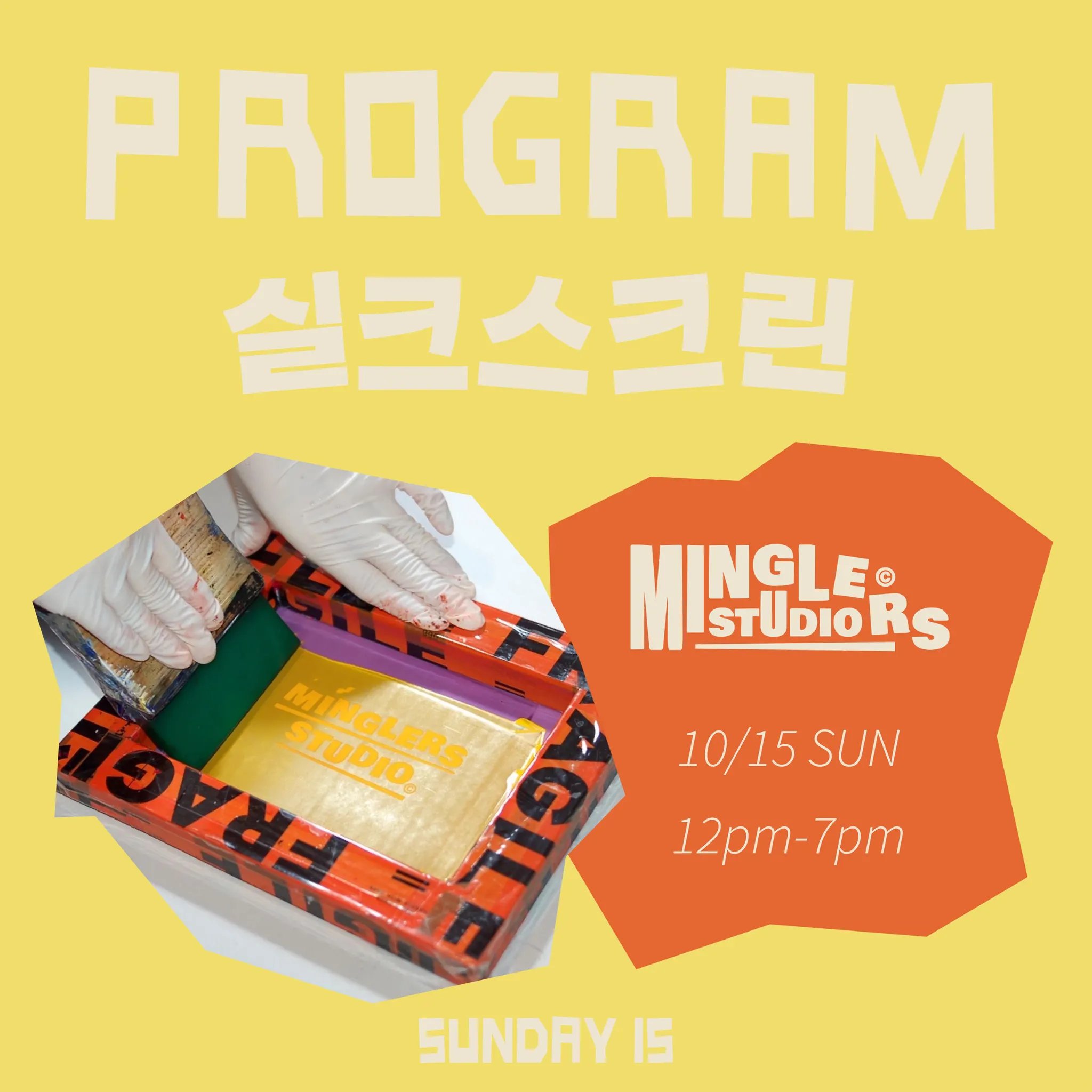 마켓에 오시는 분들을 위해 준비한 Sunday is의 실크스크린 프로그램을 소개합니다. 김호찌와 전다빈 작가가 전개하는 밍글러스 스튜디오 (@minglers.studio)에서 실크스크린 프로그램을 진행합니다. Sunday is의 로고 2종과 귀여운 일러스트 2종으로 총 4가지 도안이 마련되어 있습니다. 티셔츠, 안쓰는 천, 에코백 등을 들고오시거나, 현장에서 무지 티셔츠 구매 후 참여 가능합니다. 무료로 진행되는 프로그램으로, 많은 참여 부탁드립니다!