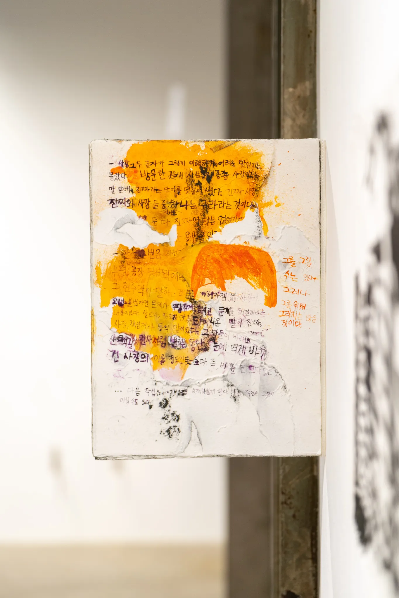 최초의 목적을 멋지게 이뤄내지는 못했지만, 일단은 프로젝트의 결과를 긍정해보기로 했다. 전시에는 내가 '불분명한 것들'로 초점을 옮긴 이후에 제작한 작품들만 걸었다. 그림에는 집 밖에서 잠든 사람과 달아나는 사람이 남았다. 생략되거나 잊혀도 되(는 거라 여겨지)는 장면과 정보가 남았다. 그 불분명한 것들을 모아 엮은 전시에서 이야기라 할 만한 것이 만들어지면 좋겠다. 그 이야기를 보거나 읽을 당신이 집 밖에서 잠들어 본 사람이거나 달아나 본 적이 있는 사람이라면 좋겠다.